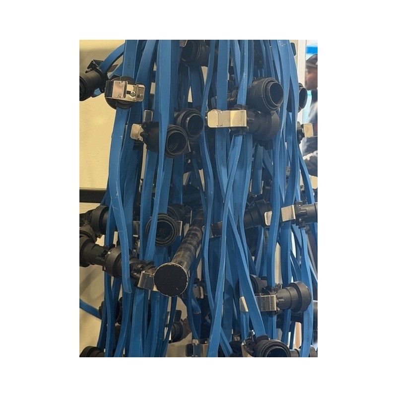 GUIRLANDE MONTÉE AVEC CLIPS Guirlande lumineuse vendue au mètre. 2 douilles/M avec joint d’étanchéité. Câble caoutchouc noir plat à utilisation extérieure permanente. Section de câble : 2 x 1,5 mm².Vendue sans ampoules et sans prise de courant.