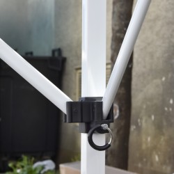 Tonnelle pliante en acier laqué blanc. Peut être vendue seule ou avec son pack 4 côtés (3 murs et 1 mur porte) .